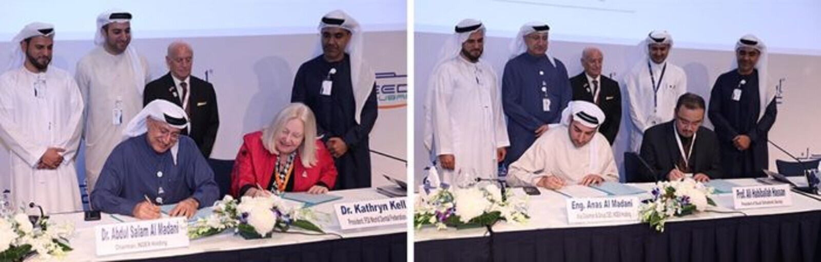 Signing ceremony ‘Cooperation Agreement’ between AEEDC Dubai and FDI World Dental Federation in the presence of Dr. Abdul Salam Al Madani, Executive Chairman, GSDA and AEEDC Dubai and Dr Kathryn Kell, President of FDI World Dental Federation.
