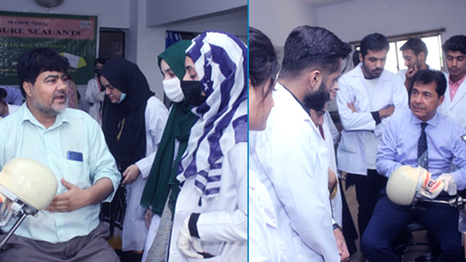 A total of 65 students attended the workshop and were divided into four groups. After the lecture, the students proceeded to the phantom head lab, where they received practical demonstrations. Subsequently, each pair of students was assigned a phantom head, allowing them to apply the sealants individually under the supervision of experienced faculty members from the Department of Community Dentistry, namely Dr. Mehwish Bano, Dr. Raza Abidi, and Dr. Wajiha Anzar.