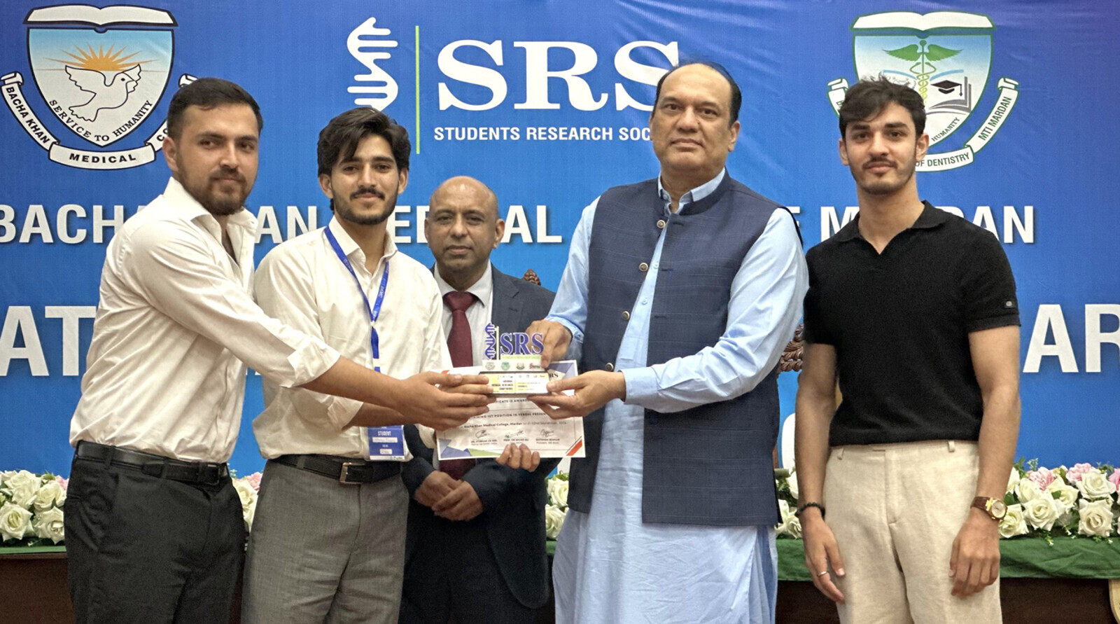 At the inaugural National Research Conference hosted by Bacha Khan Medical College, PMC's 4th-year MBBS students, Hamza Farooq and Abdal Ahmad, secured first place in the verbal research competition.